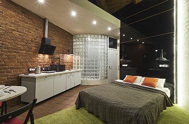 Узнать большеСтудия с мини-кухней и кухонными принадлежностями. Окна выходят в тихий внутренний двор. Площадь: 21 кв.м. Кровать: двуспальная кровать 140 см*200 см Услуги и удобства: мини-кухня (мини холодильник, плита, вытяжка, микроволновая печь, чайник), кухонные принадлежности, шкаф, телевизор, сейф, кондиционер, душ и туалет, бесплатные туалетные принадлежности, полотенца, бесплатный wi-fi. Максимальная вместимость – 3 гостя. При трехместном размещении для […]
