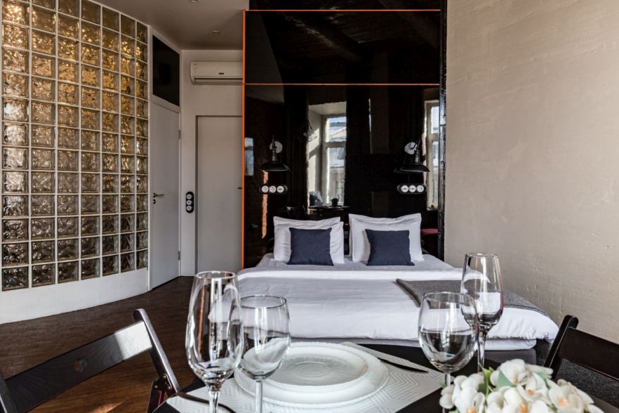 Студия с мини-кухней и кухонными принадлежностями. Окна выходят на Невский проспект. Кровать: двуспальная 160 см*200 см (+ раскладное кресло-кровать). Услуги и удобства: шкаф, телевизор, сейф, кондиционер, душ и туалет, бесплатные туалетные принадлежности, полотенца, бесплатный wi-fi.