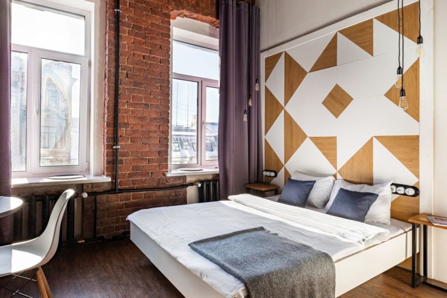 Двухуровневая студия с мини-кухней и кухонными принадлежностями. Окна выходят на Невский проспект. Площадь: 22 кв.м. Размер кроватей: две Двуспальные кровати 160*200 Услуги и удобства: мини-кухня, холодильник, душ и туалет в номере, телевизор, кондиционер, бесплатные туалетные принадлежности, кухонные принадлежности, шкаф, полотенца, сейф бесплатный wi-fi. Вместимость: 3-4 гостя