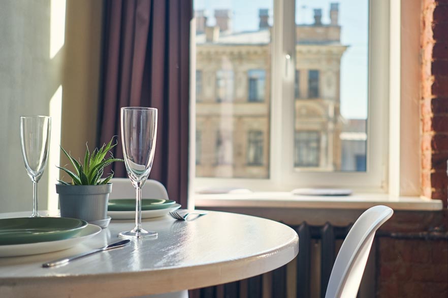 There are 3 types of rooms and apartments, furnished with all the necessary staff, the rooms are with the Nevsky prospect view or a quiet private yard view.